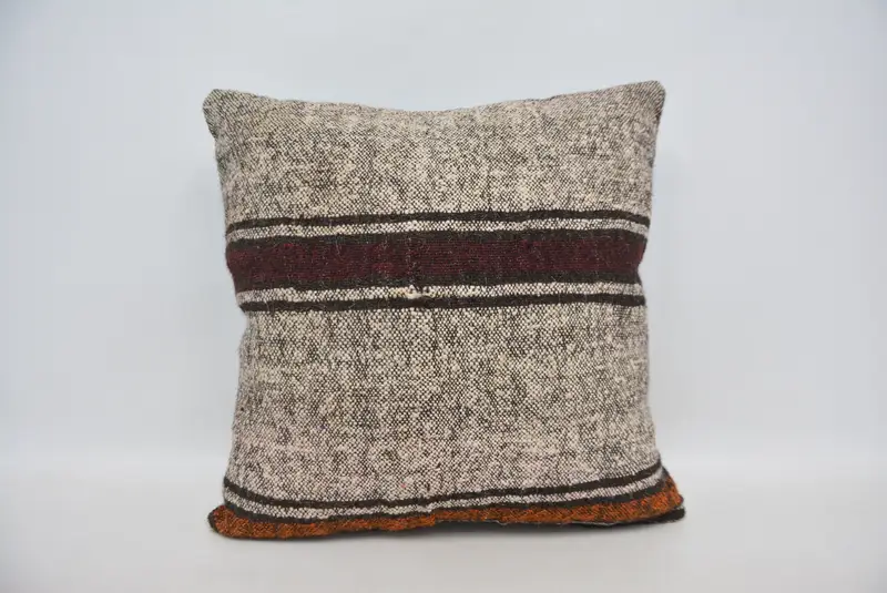 Handgefertigtes gestreiftes Kissen, 24x24 besticktes Vintage-Kissen
