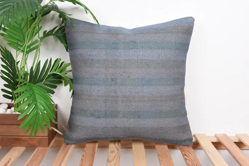 Grau-lila gestreiftes Kissen, besticktes Vintage-Kissen