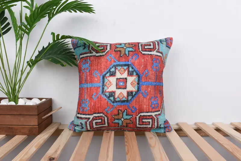Orange und braun gestreiftes Kissen, besticktes Vintage-Kissen