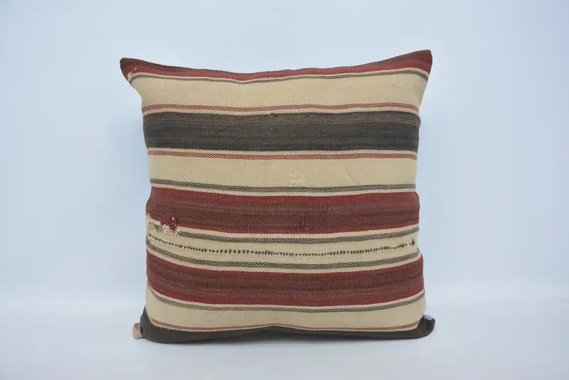 Gesticktes rot-beige gestreiftes Wurfkissen, vielseitiges Dekokissen