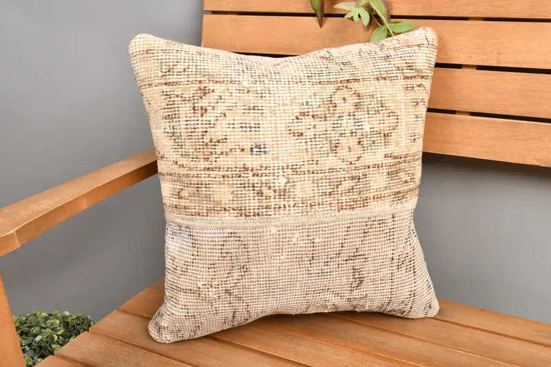Beige & braunes Patchwork-Wurfkissen, Vintage besticktes Kissen