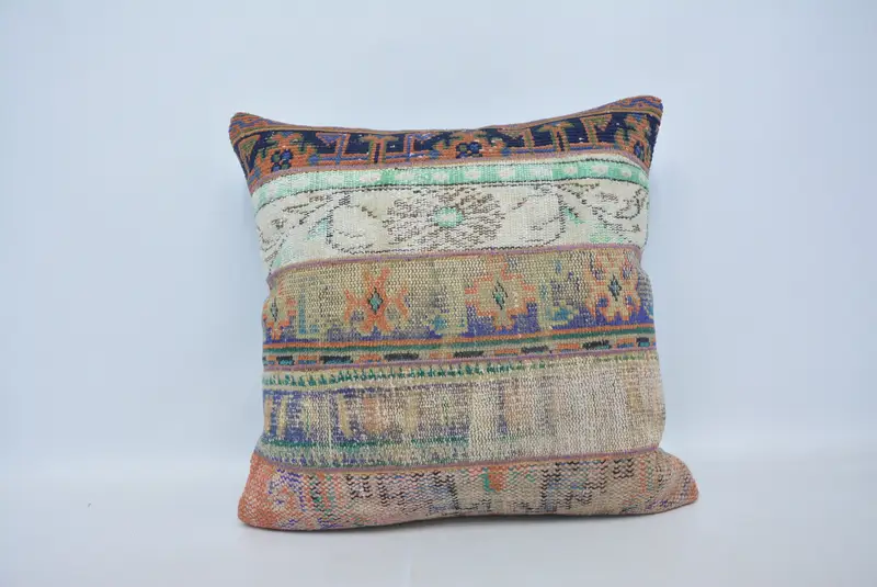 Besticktes blaues und grünes Wurfkissen, 28x28 handgemachter Hanfbezug