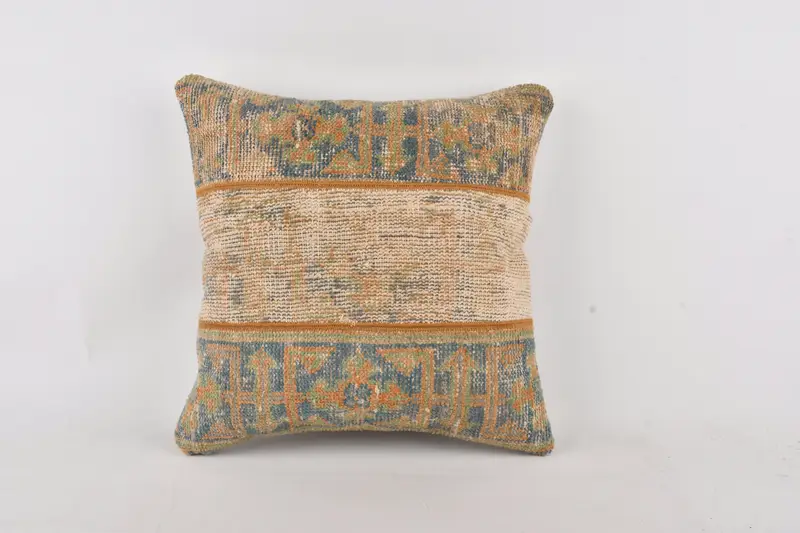 Blaues und beiges Patchwork-Wurfkissen, besticktes Vintage-Kissen