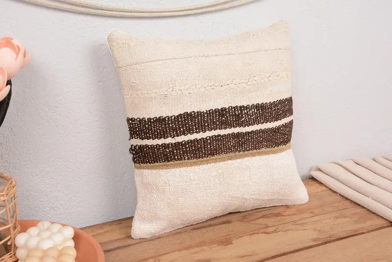 Besticktes gestreiftes Kissen, handgefertigtes Vintage-Kissen