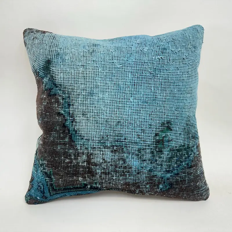 Handgefertigtes blau-braun besticktes Kissen, südwestliches Vintage-Kissen