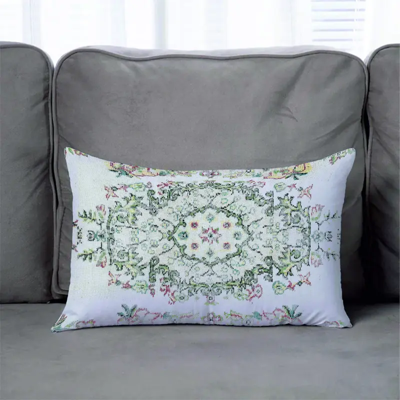 Handgefertigtes blaues und grünes Southwestern-Wurfkissen, Vintage-Rechteckkissen