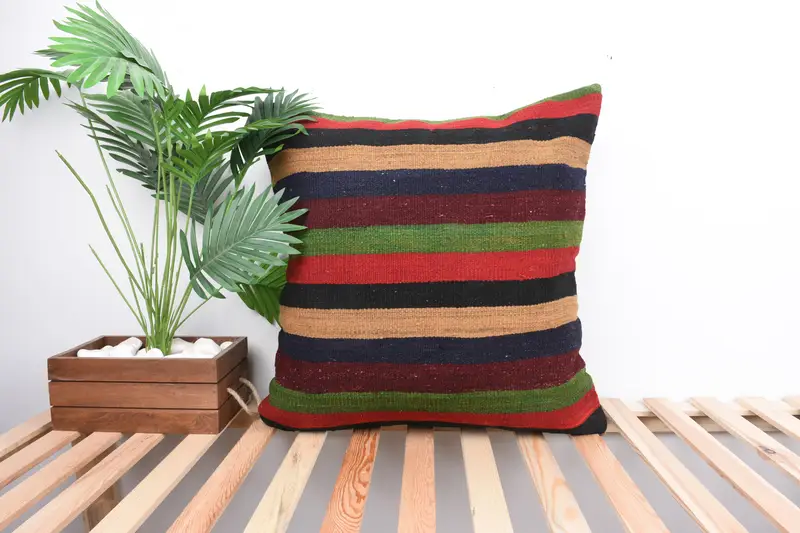 Blau und grün gestreiftes Wurfkissen, 24x24 besticktes Kissen
