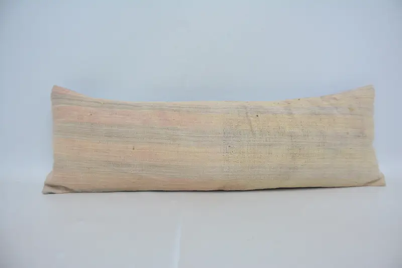 Beige & grau gestreiftes Hanf-Wurfkissen, Vintage-Kissen
