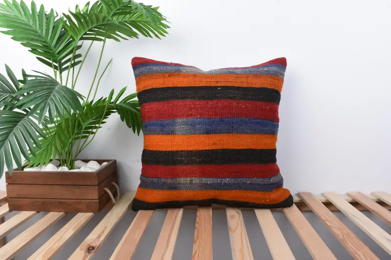 Orange und rot gestreiftes Wurfkissen, 20x20 besticktes Kissen