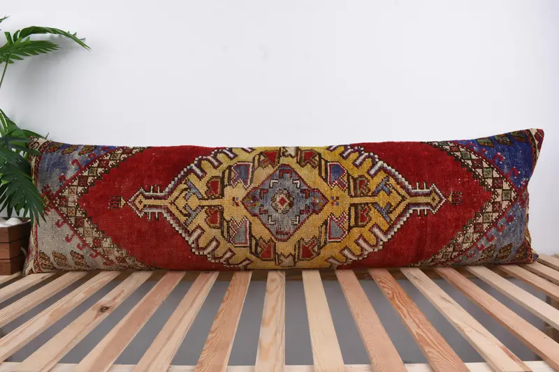 Rotes besticktes Wurfkissen, geometrisches Vintage-Akzentkissen