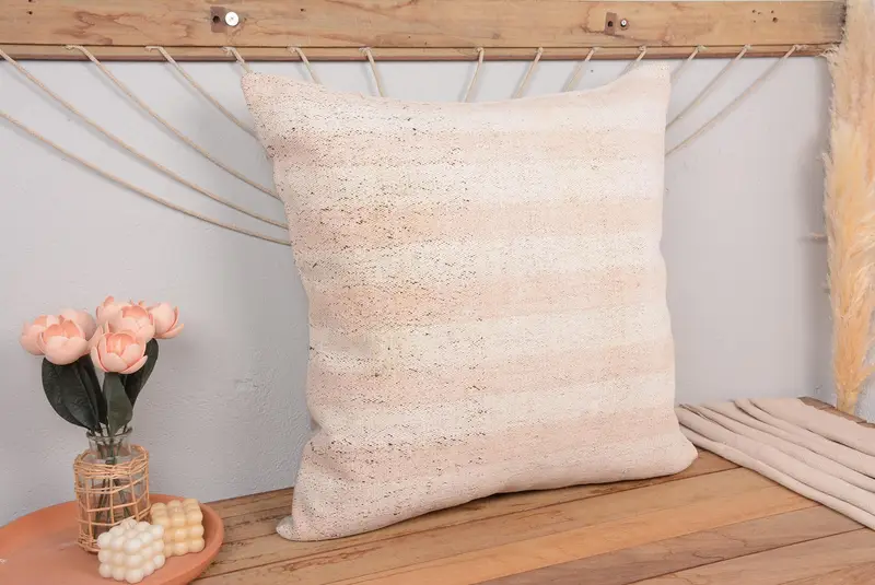 Besticktes gestreiftes Kissen, 28x28 handgemachtes Kissen