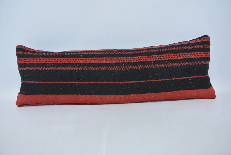 Rot-braun gestreiftes Kissen, handgemachtes Boho-Kissen