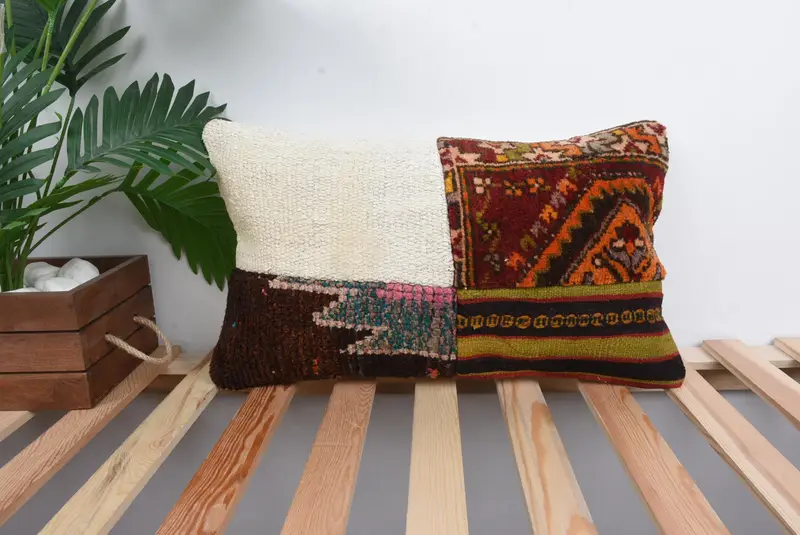Orange & braunes Patchwork-Wurfkissen, handgefertigtes rechteckiges Kissen