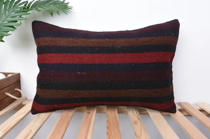 Gesticktes rot-braun gestreiftes Kissen, handgemachtes 16x24 Wurfkissen