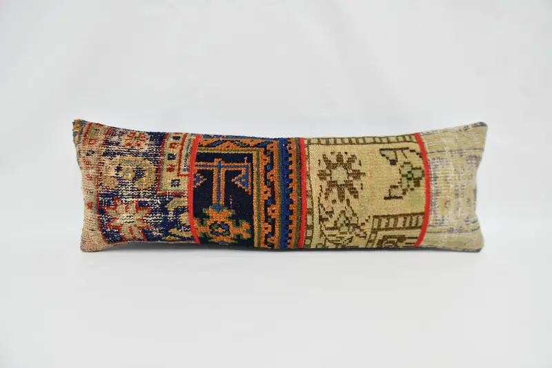 Blau & Beige 12x36 besticktes Wurfkissen, handgemachtes geometrisches Kissen