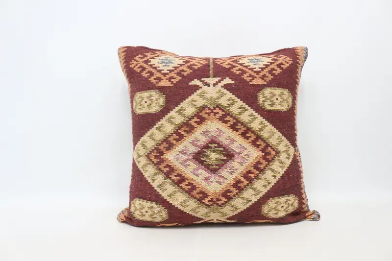 Rotes Hanfkissen, Vintage besticktes Kissen