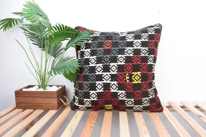 Blau & Rot gestreiftes Kissen, handgefertigtes besticktes Kissen