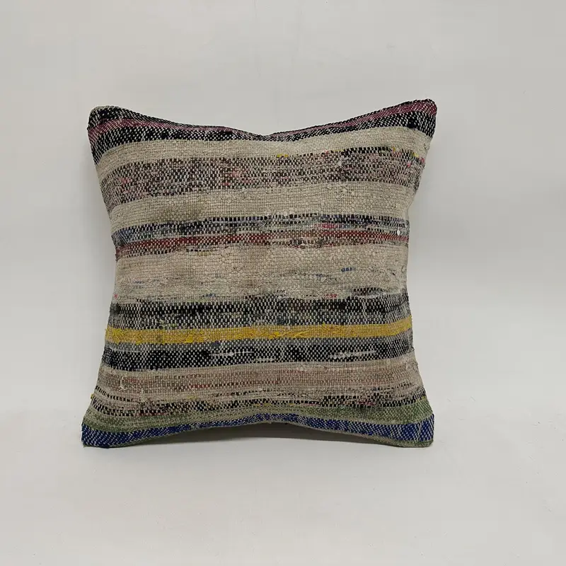 Besticktes Leinen-Wurfkissen, gestreiftes Beige- und Lila-Kissen
