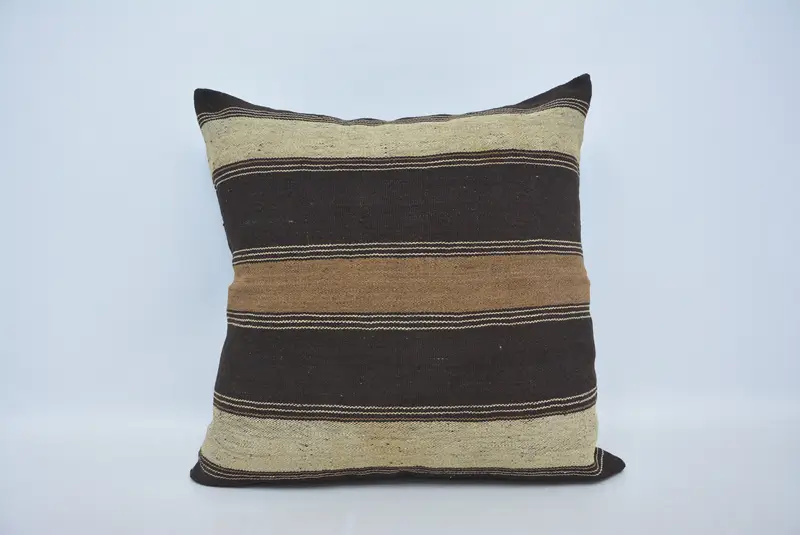 Braun und bronzefarben gestreiftes Dekokissen, Kissenbezug aus Hanf und Wolle