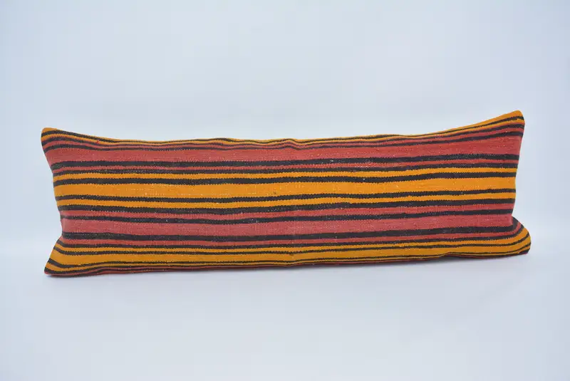 Rot & Orange gestreiftes Kissen, handgefertigtes besticktes Kissen