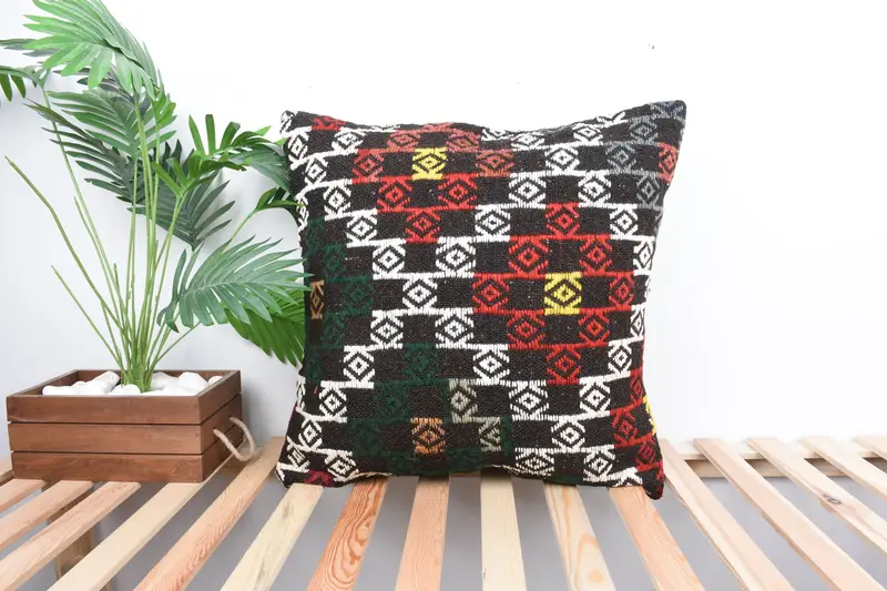 Rot-braunes geometrisches Wurfkissen, 24x24 besticktes Leinenkissen