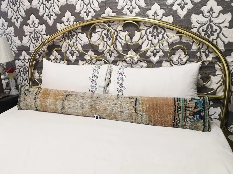 Handgefertigtes 8x55 Zoll großes Wollkissen, geometrisches Vintage-Kissen