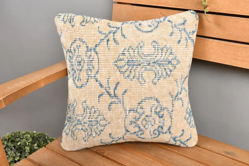 Handgefertigtes beige-grünes Blumen-Wurfkissen, vielseitiges 14x14-Kissen