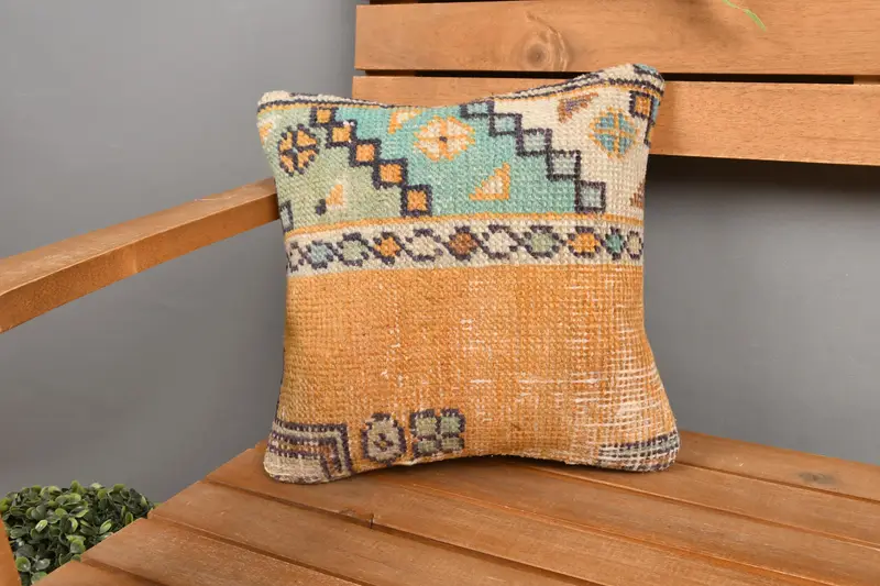 Orange & grünes Southwestern Wurfkissen, Vintage besticktes Kissen