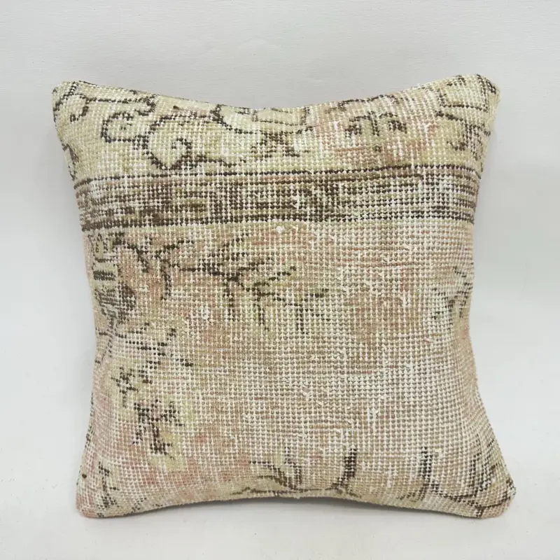 Beigefarbenes Southwestern-Kissen, besticktes Vintage-Kissen mit Reißverschluss