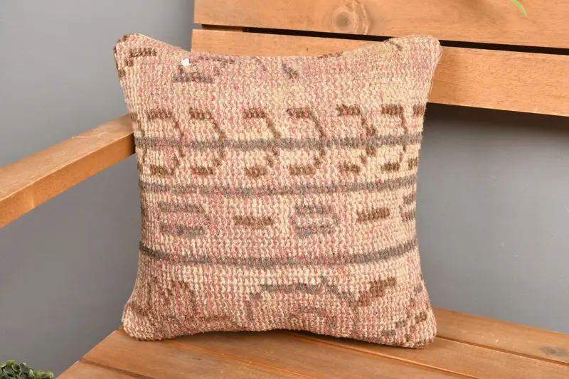 Beigefarbenes Southwestern-Wurfkissen, Vintage-gesticktes Kissen mit Reißverschluss