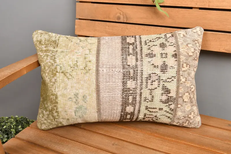Handgefertigtes Patchwork-Wurfkissen in Beige und Grün, 12 x 20 besticktes rechteckiges Kissen