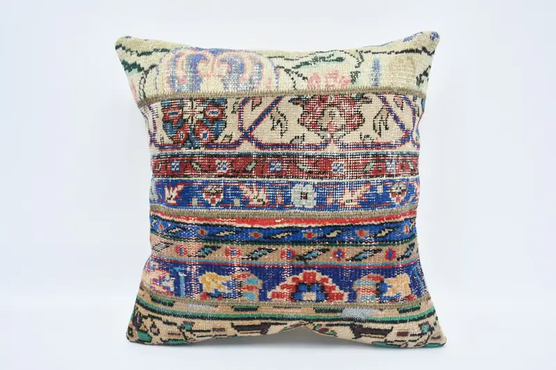 Blau & Rot 24x24 besticktes Wurfkissen, Vintage Kissen