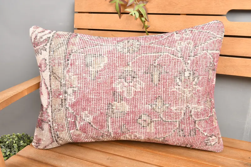 Rot & Beige besticktes Wurfkissen, handgemachtes Vintage Kissen
