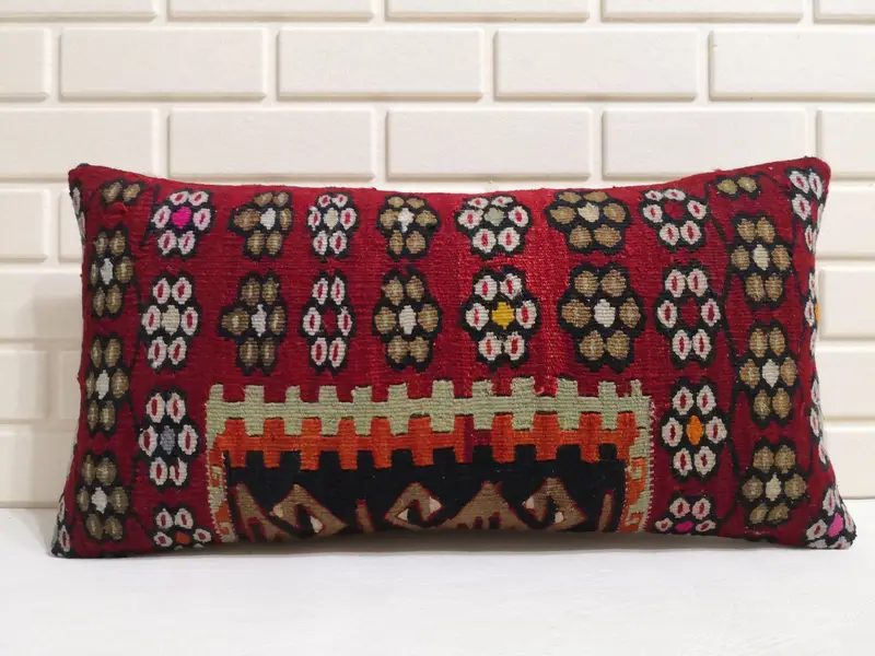 Rot-graues geometrisches Wollkissen, 12x24 Zoll handgemachtes rechteckiges Kissen