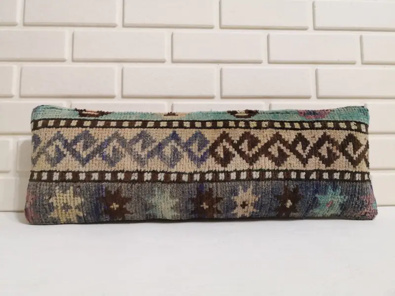 Handgefertigtes Wollkissen, geometrisches bronzefarbenes und braunes Rechteckkissen