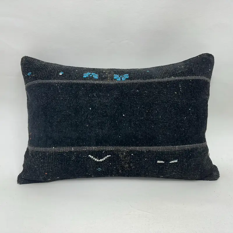 Handgefertigtes schwarzes Patchwork-Wurfkissen, 16x24 besticktes Kissen