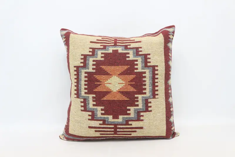 Beige & roter Kelim Kissenbezug, handgefertigtes besticktes Wurfkissen