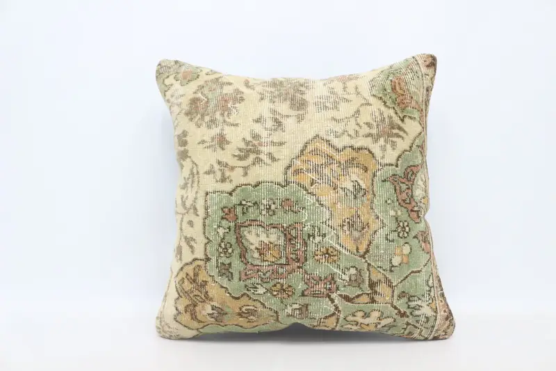 Beige & Grün besticktes Wurfkissen, handgemachtes Vintage Kissen