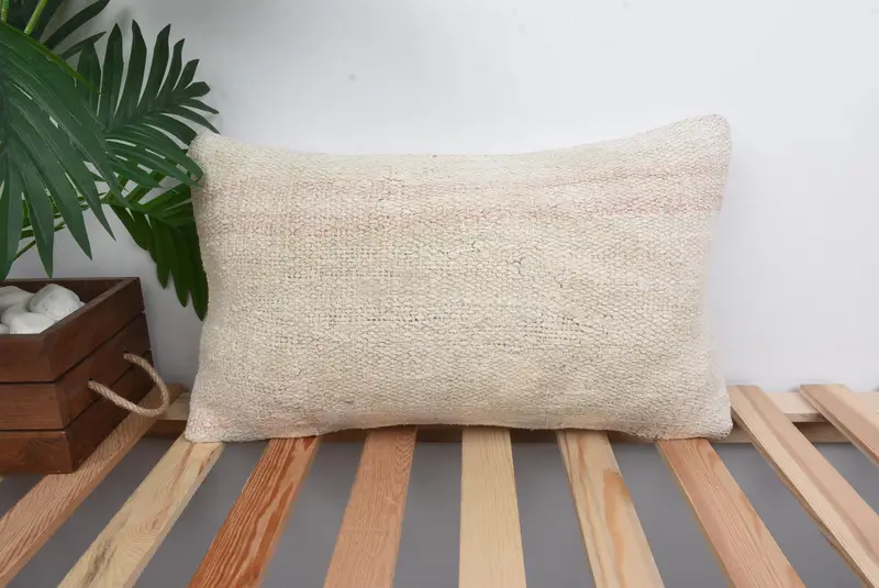 Handgefertigtes südwestliches besticktes Kissen, 12x20 Vintage Beige Wurfkissen