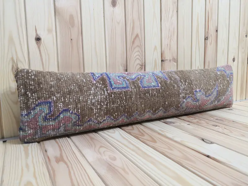 Handgefertigtes Wollkissen mit geometrischem Bronzemuster, rechteckiges Vintage-Kissen