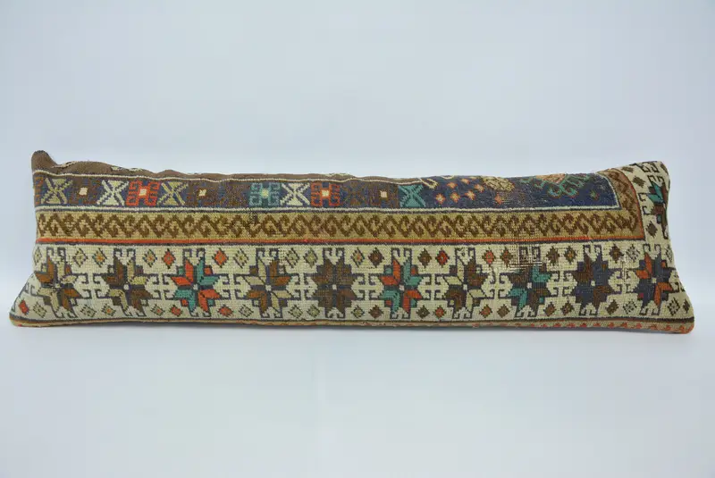 Geometrisches Hanf-Wurfkissen, Vintage besticktes Dekokissen