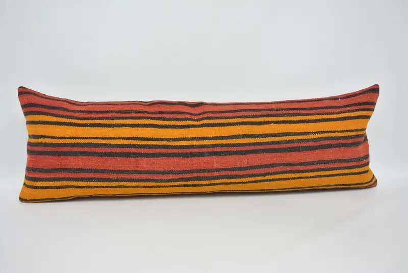 Rot & Orange gestreiftes Kissen, Vintage besticktes Kissen