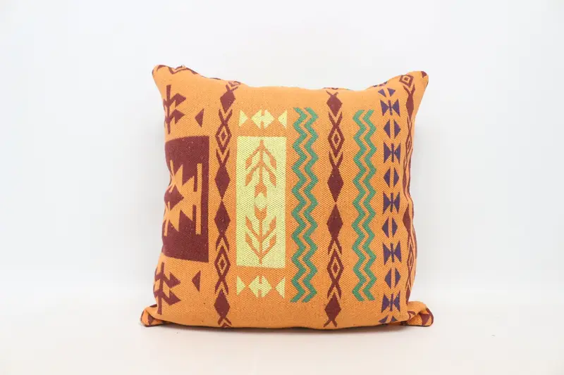 Handgefertigtes orange-grünes Blumen-Wurfkissen, Vintage-Rechteckkissen