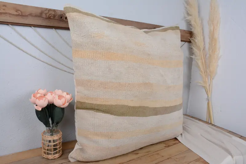 Handgefertigtes besticktes Leinen-Wurfkissen, quadratisches Vintage-Kissen