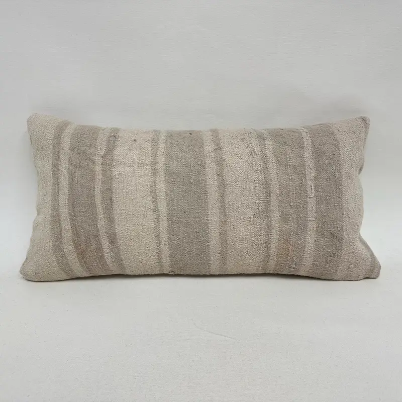 Beige und grau gestreiftes Wurfkissen, 12x24 besticktes Kissen