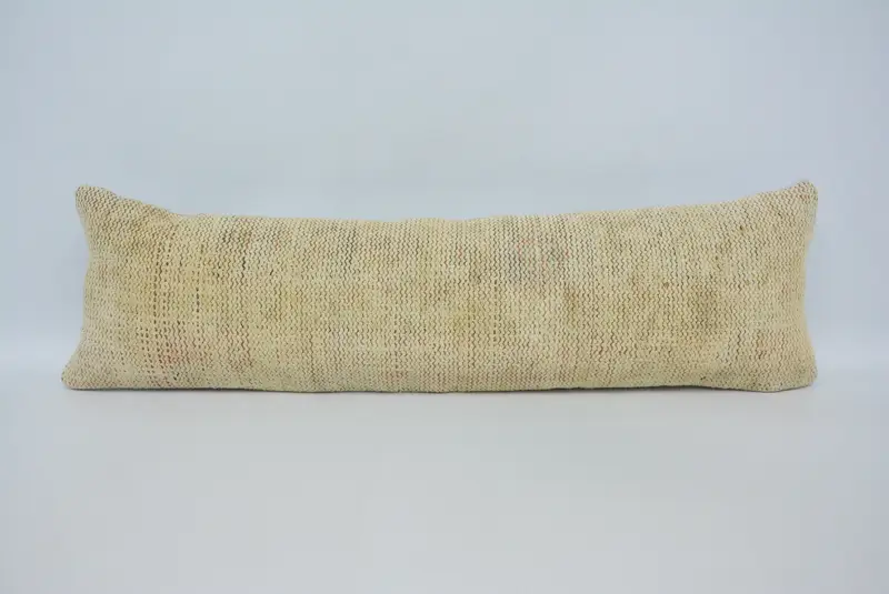 Beige besticktes Wurfkissen, quadratisches Vintage-Kissen mit Reißverschluss