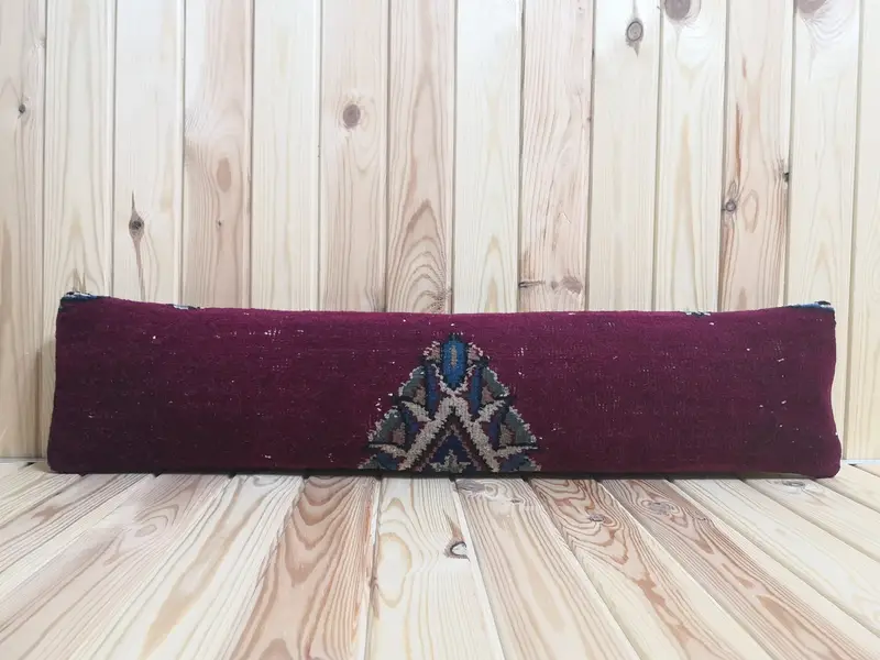 Handgefertigtes geometrisches Wollkissen in Rot und Bronze, rechteckiges Vintage-Kissen