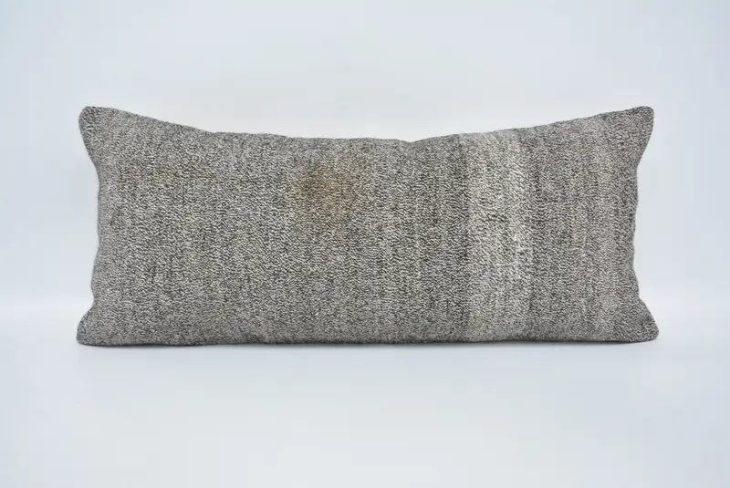 Braun-weiß kariertes Kissen, 16x36 handgemachtes Hanf- und Wollkissen