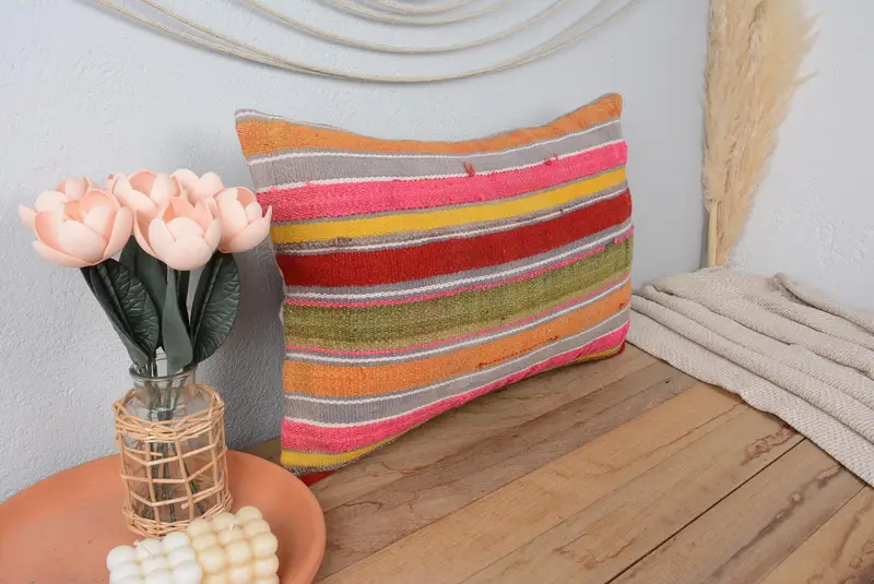 Rosa und grün gestreiftes Wurfkissen, 16x24 besticktes Kissen
