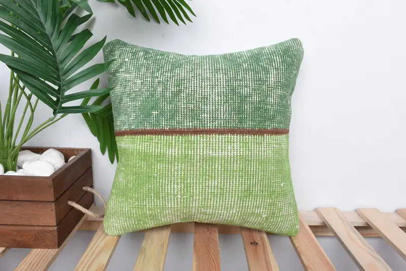 Handgefertigtes 14x14 besticktes Patchworkkissen, Vintage Grünes Wurfkissen